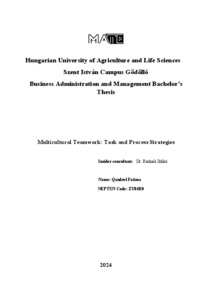 Fatima, Qandeel (2025) Mulricultural Teamwork: Task and Process Strategies. Diploma Tézis, Magyar Agrár- és Élettudományi Egyetem.