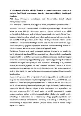 Pálfi, Anna (2024) A kukoricamoly (Ostrinia nubilalis Hbn.) és a gyapottok-bagolylepke (Helicoverpa armigera Hbn.) lárvák károsítása és a kukorica csőparaméterei közötti összefüggések vizsgálata. Diploma Tézis, Magyar Agrár- és Élettudományi Egyetem.