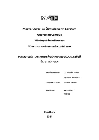 Varga, Péter (2024) Permetezés hatékonyságának vizsgálata szőlő ültetvényben. Diploma Tézis, Magyar Agrár- és Élettudományi Egyetem.