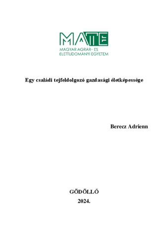 Berecz, Adrienn (2024) Egy családi tejfeldolgozó gazdasági életképessége. Diploma Tézis, Magyar Agrár- és Élettudományi Egyetem.
