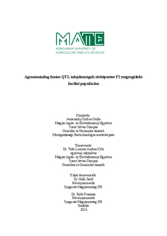 Jeszenszky, Szilvia Csilla (2024) Agronómiailag fontos QTL tulajdonságok térképezése F2 szegregálódó karfiol populáción. Diploma Tézis, Magyar Agrár- és Élettudományi Egyetem.