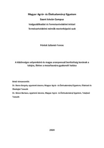 Péntek, Szilamér Ferenc (2024) A közönséges selyemkóró és magas aranyvessző borítottság korának a talajra, illetve a mezofaunára gyakorolt hatása. Diploma Tézis, Magyar Agrár- és Élettudományi Egyetem.