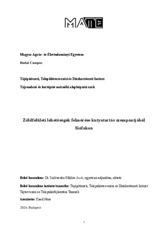 Kaed, Nóra (2024) Zöldfelületi lehetőségek felmérése kutyatartás szempontjából Siófokon. Diploma Tézis, Magyar Agrár- és Élettudományi Egyetem.