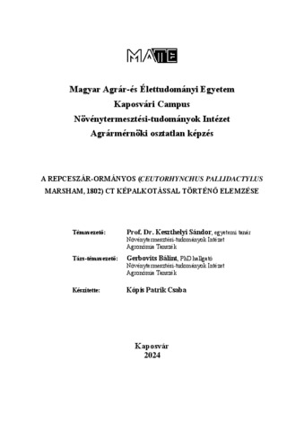 Kópis, Patrik Csaba (2024) A repceszár-ormányos (Ceutorhynchus pallidactylus Marsham, 1802) kártételének CT képalkotással történő elemzése. Diploma Tézis, Magyar Agrár- és Élettudományi Egyetem.