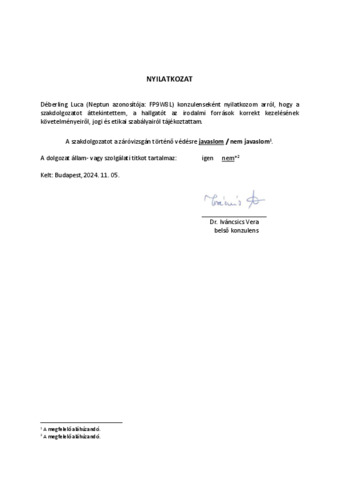| Közreműködők: | Közreműködés jellege Név Neptunkód E-mail Konzulens Iváncsics, Vera TZMRF5 - |