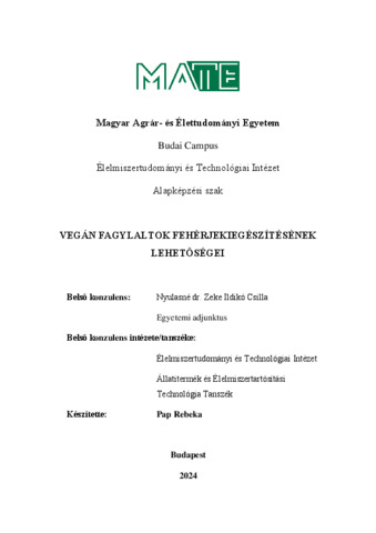 Pap, Rebeka (2024) Vegán fagylaltok fehérjekiegészítésének lehetőségei. Diploma Tézis, Magyar Agrár- és Élettudományi Egyetem.