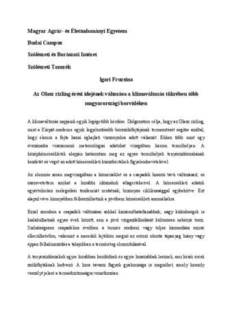 Igari, Fruzsina (2024) Az Olasz rizling érési idejének változása a klímaváltozás tükrében több magyarországi borvidéken. Diploma Tézis, Magyar Agrár- és Élettudományi Egyetem.