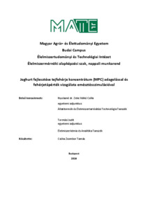 Csóka, Zsombor Tamás (2024) Joghurt fejlesztése tejfehérje koncentrátum (MPC) adagolással és fehérjetápérték vizsgálata emésztésszimulációval. Diploma Tézis, Magyar Agrár- és Élettudományi Egyetem.
