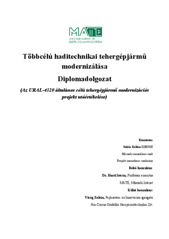 Szitás, Zoltán (2024) Többcélú haditechnikai tehergépjármű modernizálása. Diploma Tézis, Magyar Agrár- és Élettudományi Egyetem.