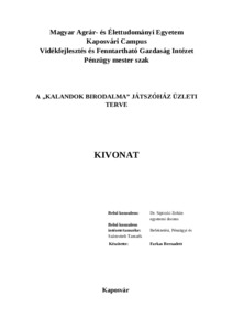 Farkas, Bernadett (2025) A „KALANDOK BIRODALMA” JÁTSZÓHÁZ ÜZLETI TERVE. Diploma Tézis, Magyar Agrár- és Élettudományi Egyetem.