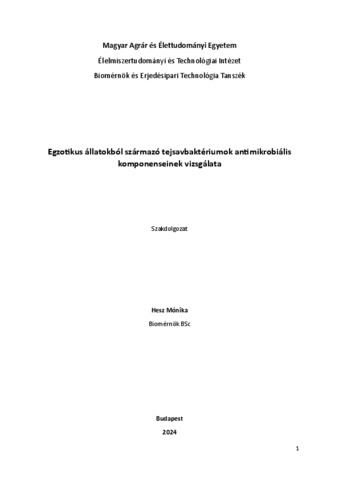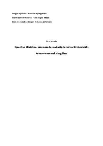 Hesz, Mónika (2024) Egzotikus állatokból származó tejsavbaktériumok antimikrobiális komponenseinek vizsgálata. Diploma Tézis, Magyar Agrár- és Élettudományi Egyetem.
