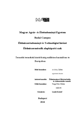 László, Kristóf (2024) Termelői termékek háztól-házig szállítása hazánkban és Európában. Diploma Tézis, Magyar Agrár- és Élettudományi Egyetem.
