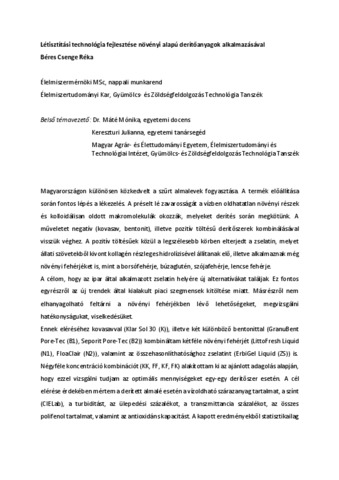 Béres, Csenge Réka (2025) Létisztítási technológia fejlesztése növényi alapú derítőanyagok alkalmazásásval. Diploma Tézis, Magyar Agrár- és Élettudományi Egyetem.