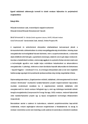 Balogh, Béla (2024) Egyedi skálázható zöldenergia termelő és tároló rendszer fejlesztése és projektszintű megközelítése. Diploma Tézis, Magyar Agrár- és Élettudományi Egyetem.