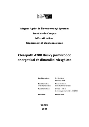Képiró, Donát (2024) Clearpath A200 Husky járműrobot energetikai és dinamikai vizsgálata. Diploma Tézis, Magyar Agrár- és Élettudományi Egyetem.