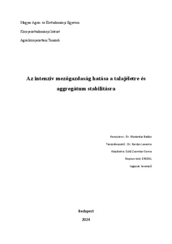 Sütő, Zsombor Soma (2024) A szántás által előidézett problémák és a talajkímélő gazdálkodás jótékony hatása a talaj biológiai aktivitására. Diploma Tézis, Magyar Agrár- és Élettudományi Egyetem.