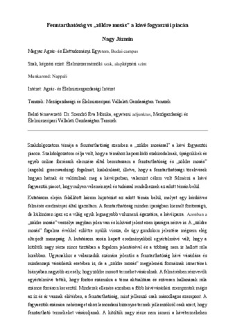 Nagy, Jázmin (2024) Fenntarthatóság vs "zöldre mosás" a kávé fogyasztói piacán. Diploma Tézis, Magyar Agrár- és Élettudományi Egyetem.