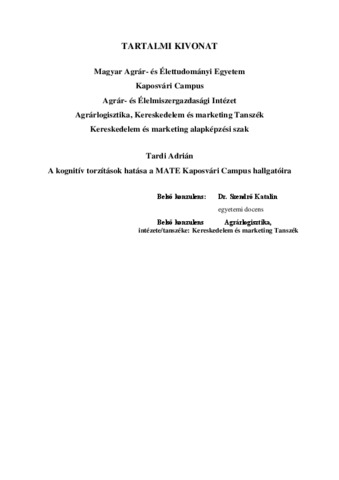 Tardi, Adrián (2024) A kognitív torzítások hatása a MATE Kaposvári Campus hallgatóira. Diploma Tézis, Magyar Agrár- és Élettudományi Egyetem.