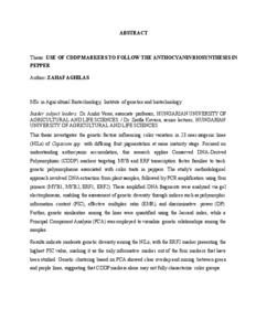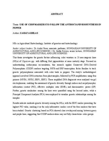 Zahaf, Aghilas (2024) USE OF CDDP MARKERS TO FOLLOW THE ANTHOCYANIN BIOSYNTHESIS IN PEPPER. Diploma Tézis, Magyar Agrár- és Élettudományi Egyetem.