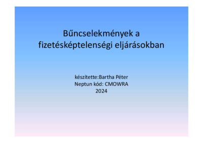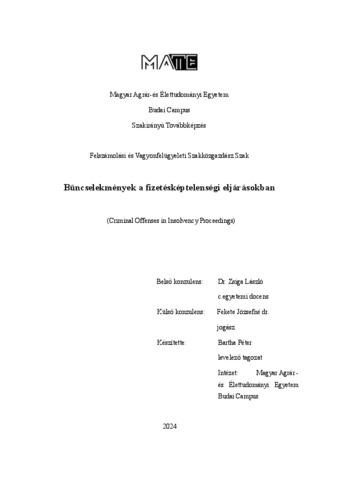 Bartha, Péter (2024) Bűncselekmények a fizetésképtelenségi eljárásokban. Diploma Tézis, Magyar Agrár- és Élettudományi Egyetem.