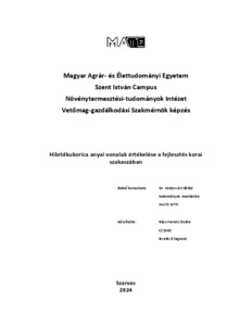 Rácz, Ferenc Endre (2024) Hibridkukorica anyai vonalak értékelése a fejlesztés korai szakaszában. Diploma Tézis, Magyar Agrár- és Élettudományi Egyetem.