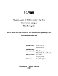 Balog, Mihály Csaba (2024) Automatizálás az agráriumban: Robotizált vetőmag feldolgozás a Bayer Hungária Kft-nél. Diploma Tézis, Magyar Agrár- és Élettudományi Egyetem.