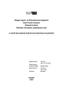 Réz, Ádám (2024) A VEVŐI REKLAMÁCIÓ KEZELÉS FOLYAMATÁNAK FEJLESZTÉSE. Diploma Tézis, Magyar Agrár- és Élettudományi Egyetem.