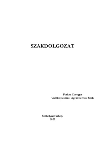 Farkas, Csongor (2023) A mezőgazdaság szerepe a foglalkoztatotságban Erdővidéken. Diploma Tézis, Magyar Agrár- és Élettudományi Egyetem.