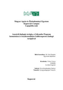 Vörös, Vivien (2023) Ausztrál dadogás terápia, a Lidcombe Program bemutatása és összehasonlítása Szülőcsoportos dadogó terápiával. Diploma Tézis, Magyar Agrár- és Élettudományi Egyetem.