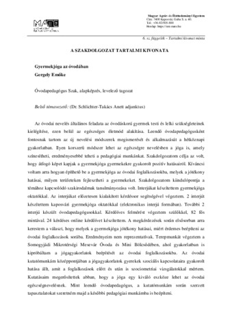 Gergely, Emőke (2023) Gyermekjóga az óvodában. Diploma Tézis, Magyar Agrár- és Élettudományi Egyetem.