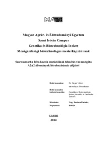 Nagy, Barbara Katinka (2024) Szarvasmarha Béta-kazein mutációinak felmérése homozigóta A2A2 állományok létrehozásának céljából. Diploma Tézis, Magyar Agrár- és Élettudományi Egyetem.